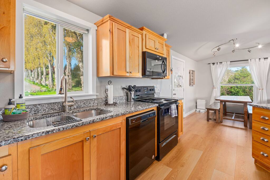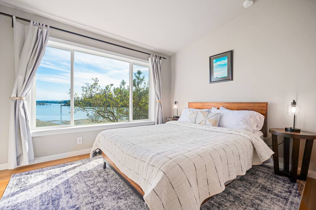 Constructed in 2018, the house is a cozy 1000 square feet with two bedrooms and a high end custom queen wall bed to the side of the living room. Full kitchen, washer, dryer and Internet access are all provided. The jewel of the space is the views from the living area and bedrooms across Jackson Beach to the south. They're unobstructed and unforgettable. You'll be located on one of the only saltwater rivers in the western United States, a fascinating natural oddity where fresh water melds with salt and then flows back with the tides. The house also contains a display of tools and arrowheads found at the nearby archaeological site dating from 2,500 to 5,000 years old. Pets are welcome - please send a message to talk about the pet policy.