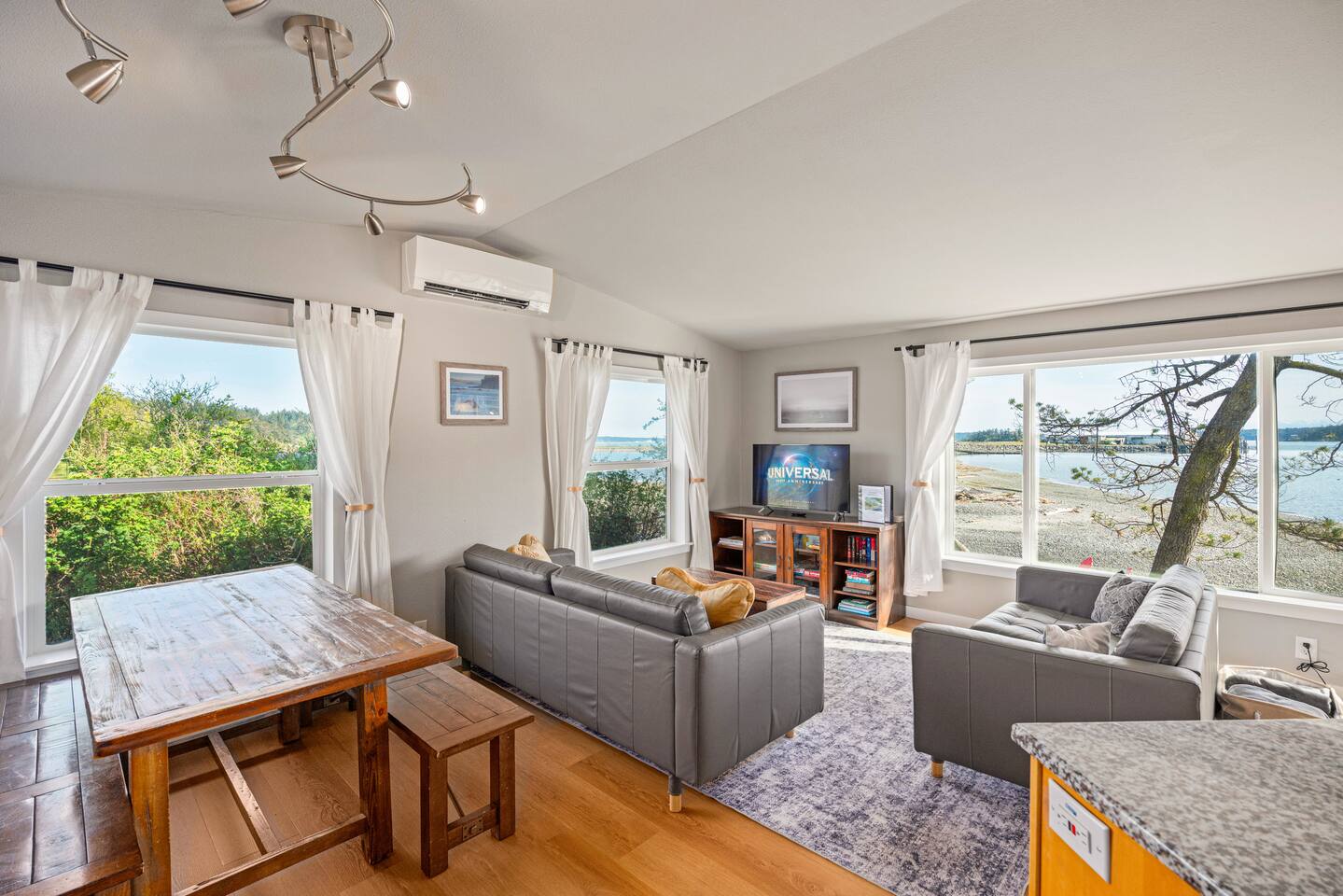Constructed in 2018, the house is a cozy 1000 square feet with two bedrooms and a high end custom queen wall bed to the side of the living room. Full kitchen, washer, dryer and Internet access are all provided. The jewel of the space is the views from the living area and bedrooms across Jackson Beach to the south. They're unobstructed and unforgettable. You'll be located on one of the only saltwater rivers in the western United States, a fascinating natural oddity where fresh water melds with salt and then flows back with the tides. The house also contains a display of tools and arrowheads found at the nearby archaeological site dating from 2,500 to 5,000 years old. Pets are welcome - please send a message to talk about the pet policy.